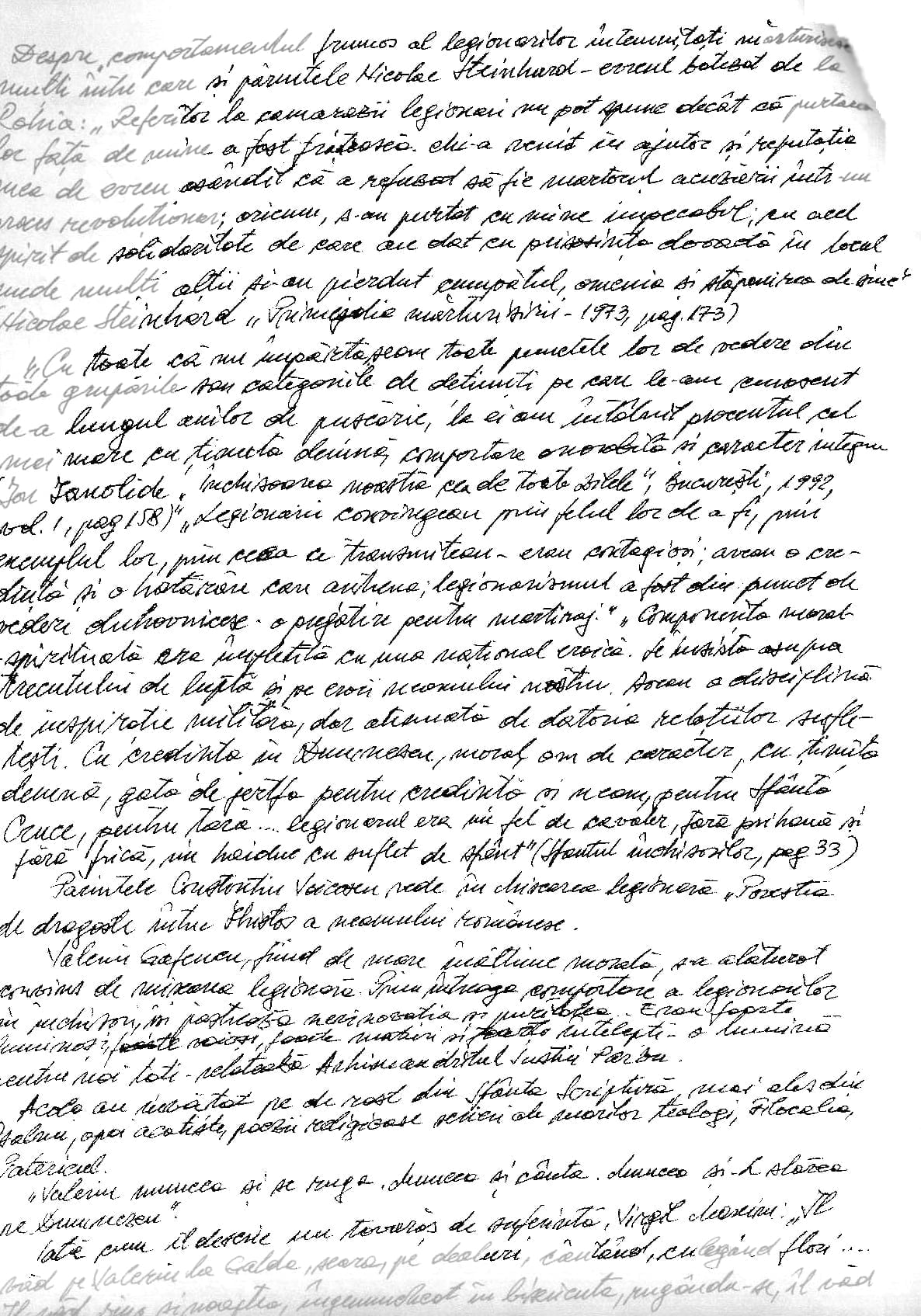 „Legionarii convingeau, prin felul lor de a fi, prin exemplul lor, prin ceea ce transmiteau – erau contagioşi, aveau o credinţă şi o hotărâre care antrena; legionarismul a fost, din punct de vedere duhovnicesc, o pregătire pentru martiraj.” „Componenta moral-spirituală era împletită cu una naţional-eroică. Se insista asupra trecutului de luptă şi pe eroii neamului nostru. Aveau o disciplină de inspiraţie militară, dar atenuată de datoria relaţiilor sufleteşti. Cu credinţă în Dumnezeu, moral, om de caracter, cu ţinută demnă, gata de jertfa pentru credinţă şi neam, pentru Sfânta Cruce, pentru ţară… legionarul era un fel de cavaler, fără prihană şi fără frică, un haiduc cu suflet de sfânt.” („Sfântul închisorilor, pag. 33)