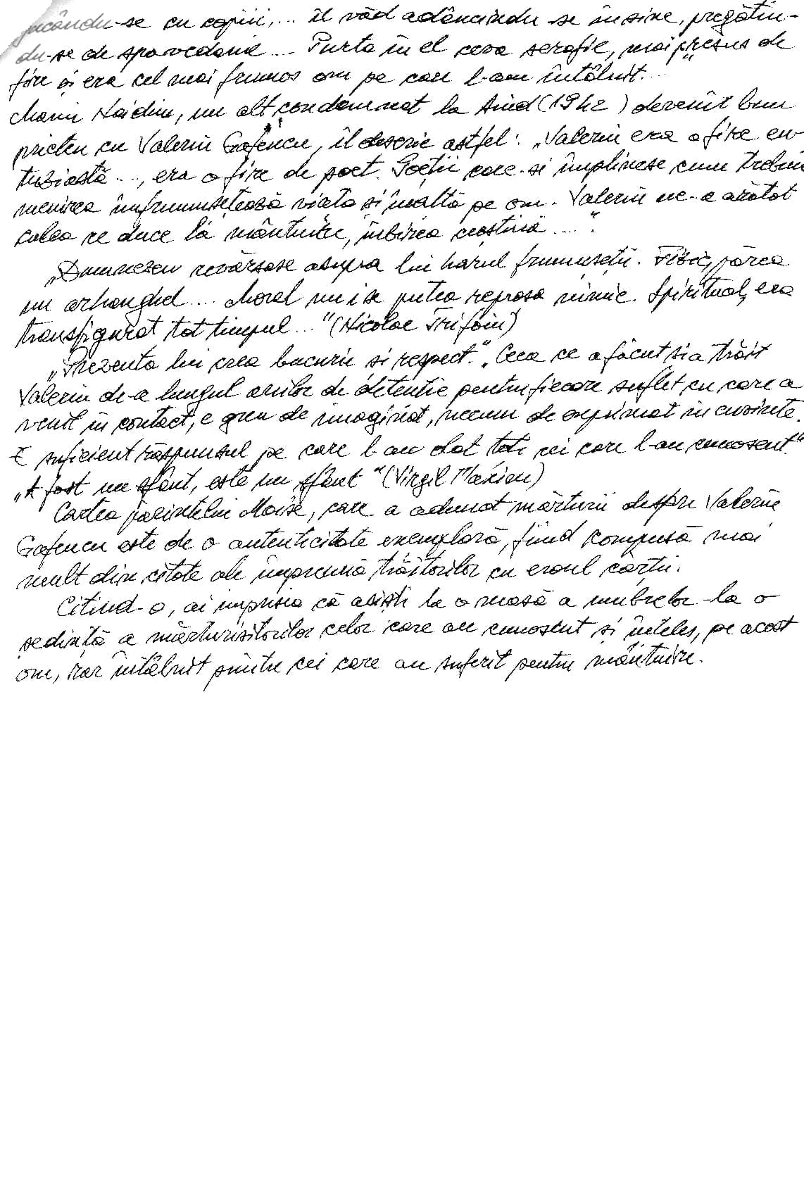 „Prezenţa lui crea bucurie şi respect.” Ceea ce a făcut şi a trăit Valeriu de-a lungul anilor de detenţie, pentru fiecare suflet cu care a venit în contact, e greu de imaginat, necum de exprimat în cuvinte. E suficient răspunsul pe care l-au dat toţi cei care l-au cunoscut. „A fost un sfânt, este un sfânt.” (Virgil Marian)