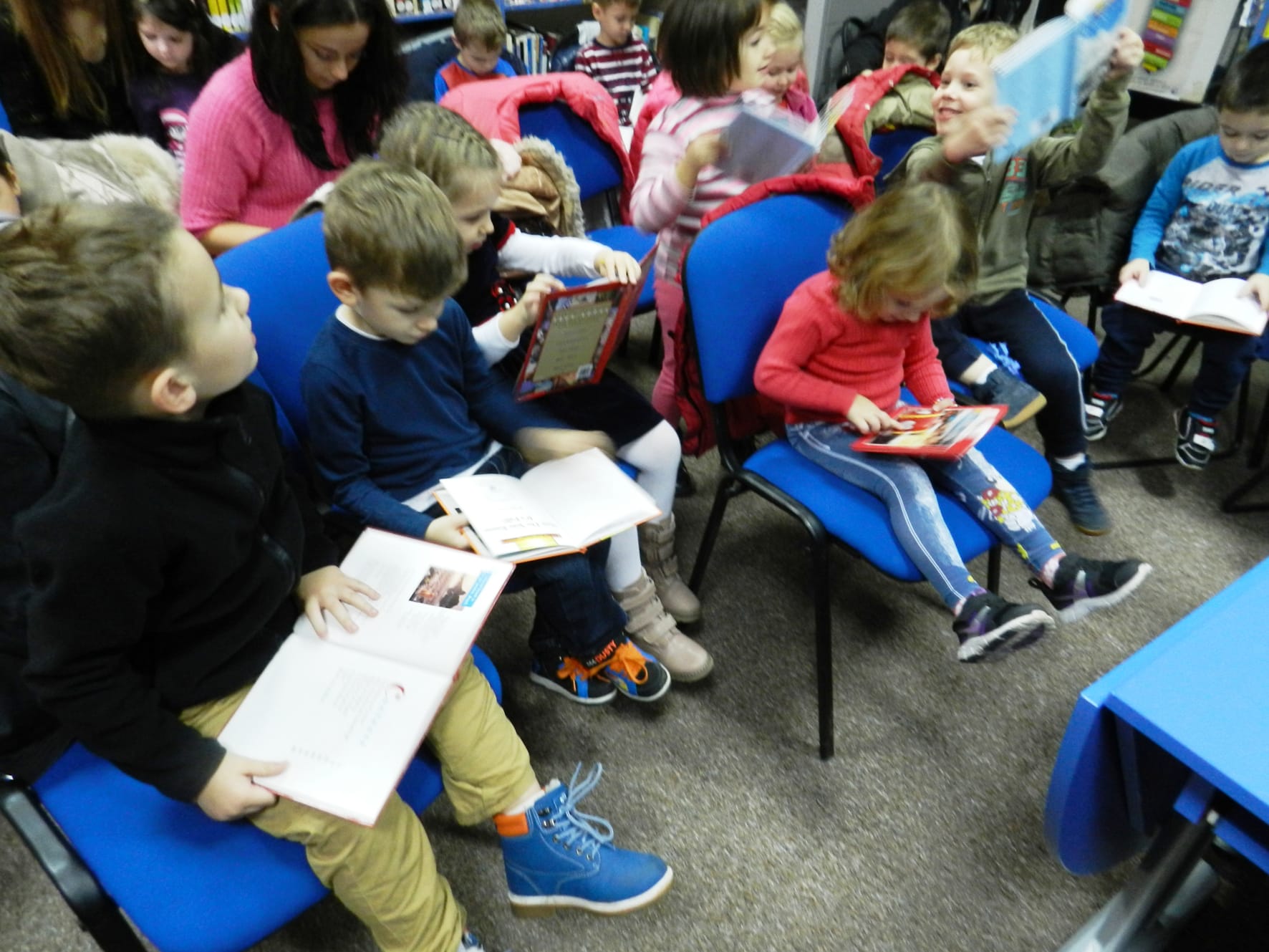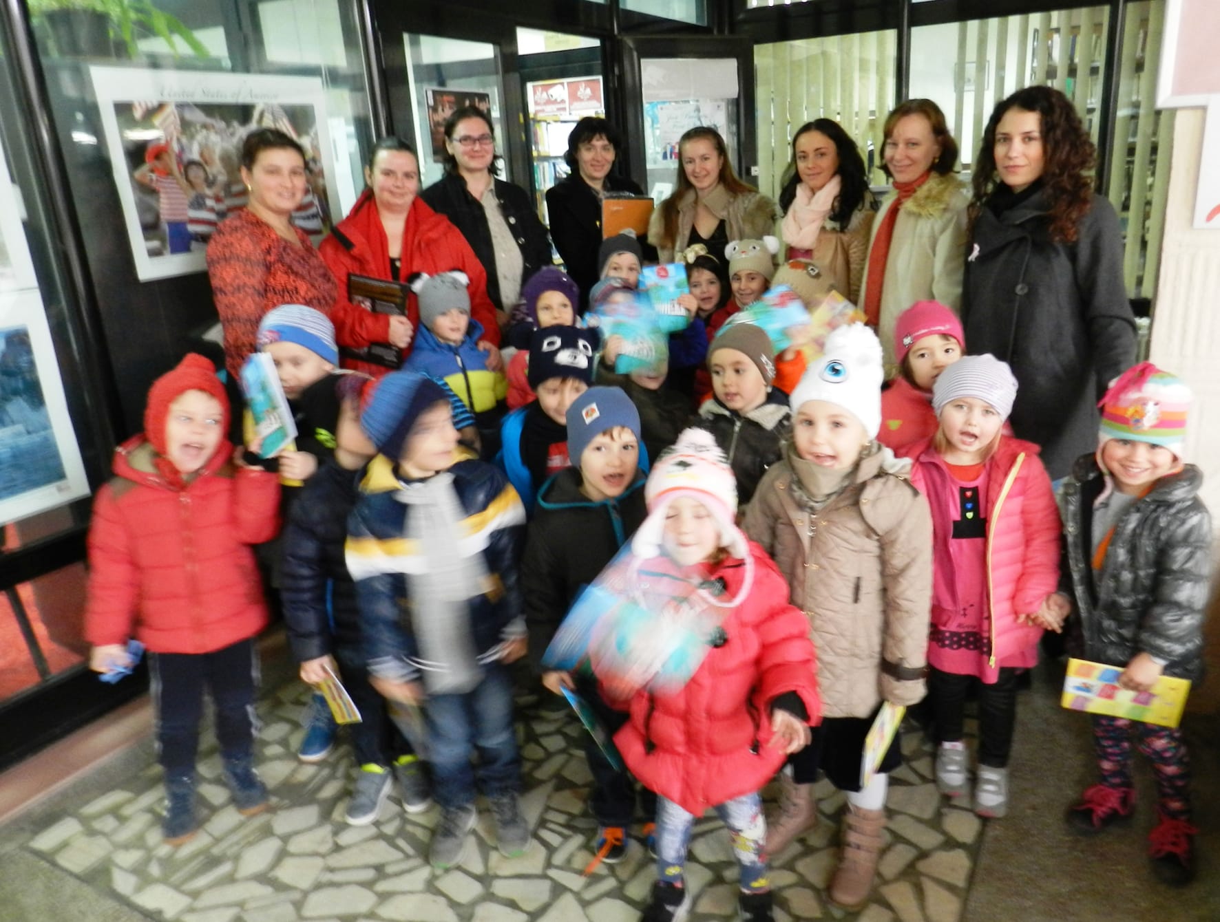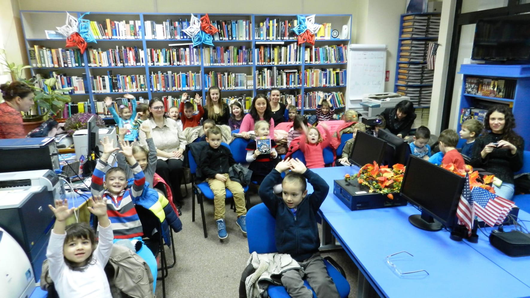După ce în luna octombrie Caravana American Corner s-a oprit și la Grădinița FEG, copiii ne-au întors vizita și au venit pentru prima dată la Biblioteca Județeană „Gh. Asachi” Iași. Împreună cu profesoarele de limba engleză și educatoarele de la grupa mare au vizionat, la American Corner, filmele de animație „Loopy Sloop” și „Pădurea celor 40 de copaci” și au răsfoit primele cărți în limba engleză. La sfârșitul întâlnirii, micii cititori au făcut un tur al bibliotecii, vizitând și celelalte secții. Copiii au fost foarte încântaţi, atât de cele două filmuleţele vizionate, cât şi de vizita la bibliotecă.