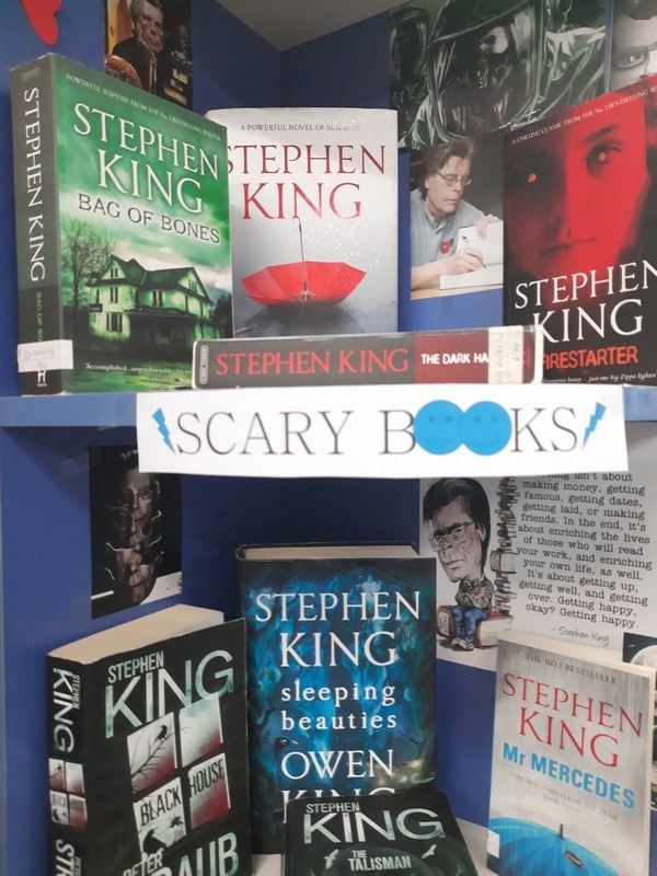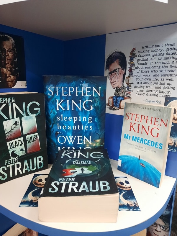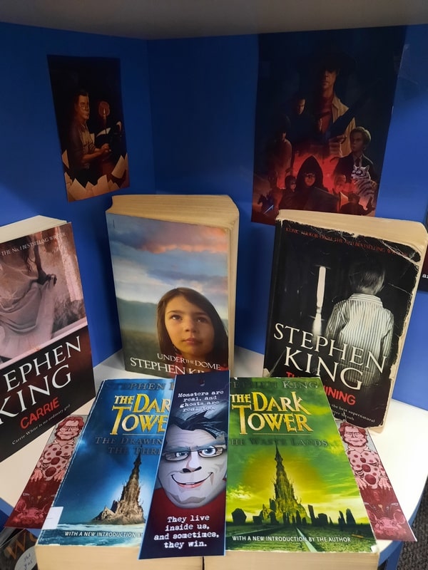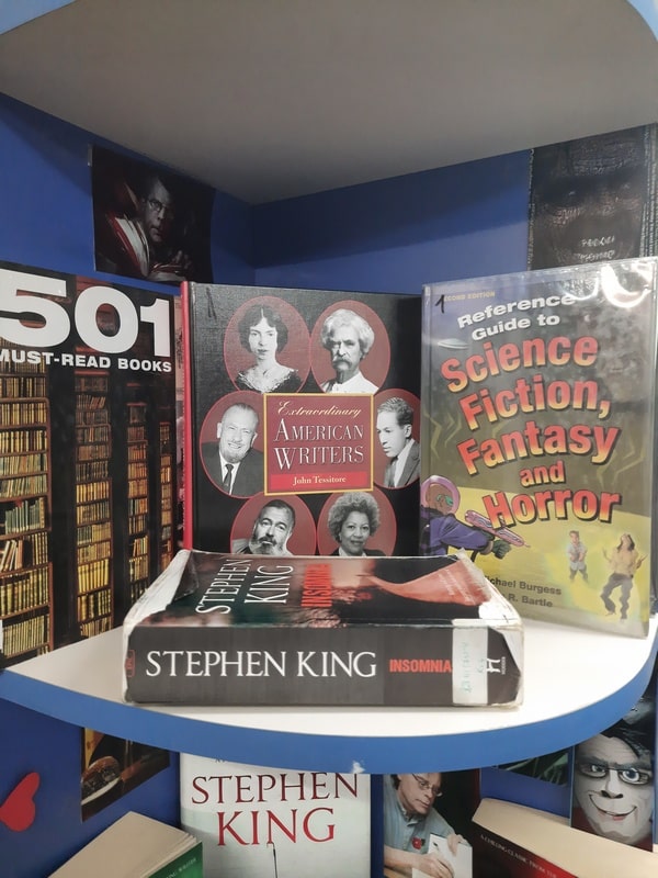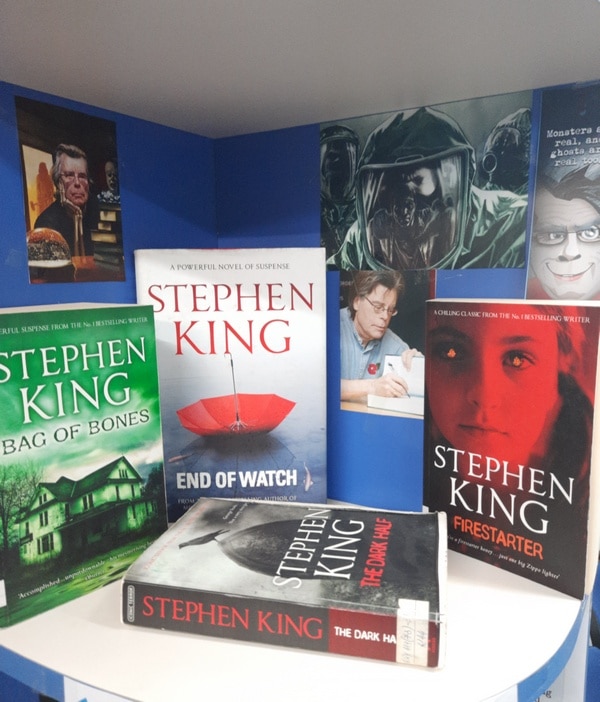 Pentru iubitorii genului am pregătit o expoziție, cuprinzând cărți ale maestrului suspansului și al horror-ului Stephen King. Regele groazei, un adevărat star al culturii de masă, a scris o avalanșă de romane, peste 60, creionând astfel personaje de neuitat, intrigante, care trăiesc aventuri ce se derulează în circumstanțe extraordinare.
