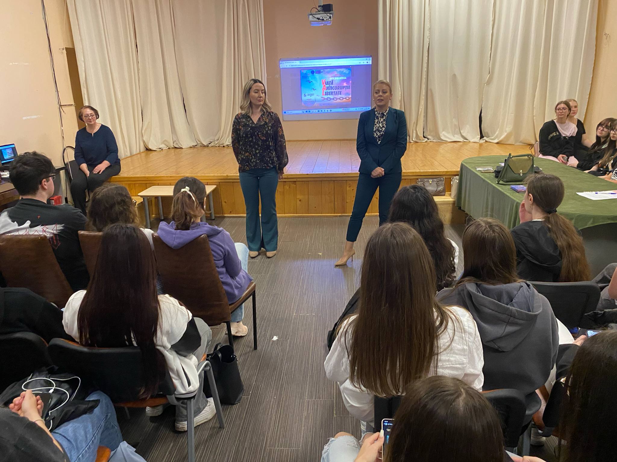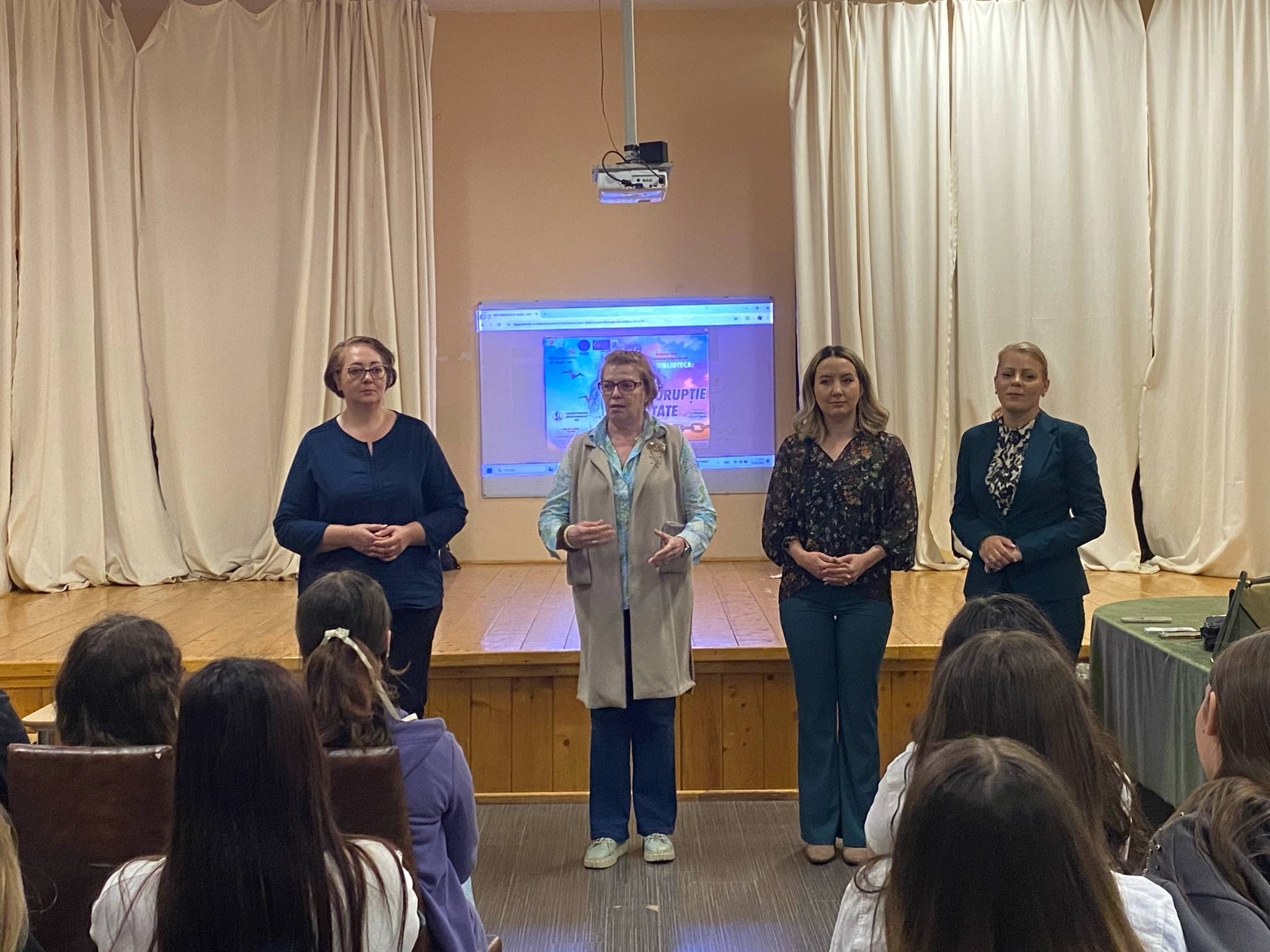 Activitatea tematică de prevenție educativă a fost susținută de subcomisar de poliție, Anca Vîjiac și inspector de poliție, Sabina Ciocan de la Direcția Generală Anticorupție (D.G.A.) – Serviciul Județean Anticorupție Iași; inspector de specialitate, Camelia Cora din cadrul Agenției Naționale Împotriva Traficului de Persoane – Centrul Regional Iași.