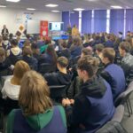 Publicul tânăr de la clasele a IX-a A, a IX-a B, a IX-a E (director, prof. Liana Dolores Voinea, director adj. prof. Irina Isabella Savin, prof. Flaviana Popinciuc, prof. Valerica Beatrice Nica, prof. Irina Doboș, prof. Roxana Gavril, prof. Simona Zaharia, ing. Adrian Luca) a fost prezent în Sala de Festivități a liceului, unde a participat cu interes la activitate.