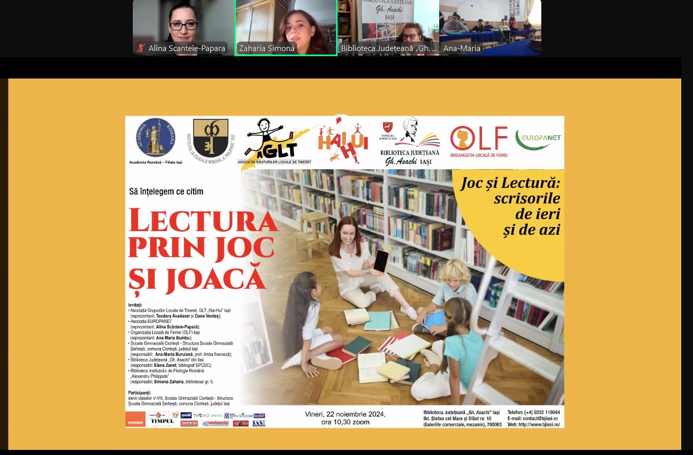 În 22 noiembrie 2024, Biblioteca Judeţeană „Gh. Asachi” Iași a fost prezentă pe platforma zoom la un proiect cu o activitate-invitație din partea Asociației Grupurilor Locale de Tineret (AGLT) Iași (dr. Simona Zaharia), Biblioteca Institutului de Filologie Română „Alexandru Philippide” împreună cu Asociația EUROPANET având reprezentant pe Alina Scânteie-Papară.