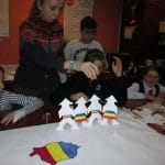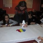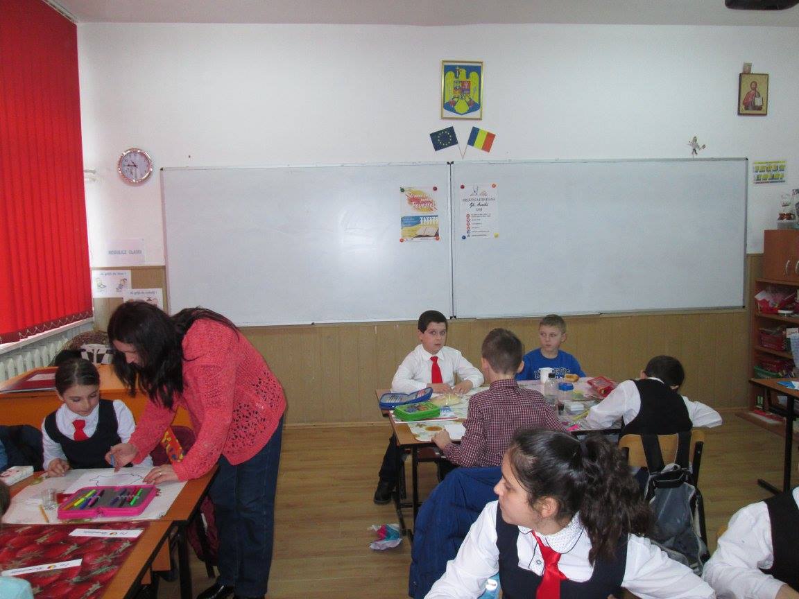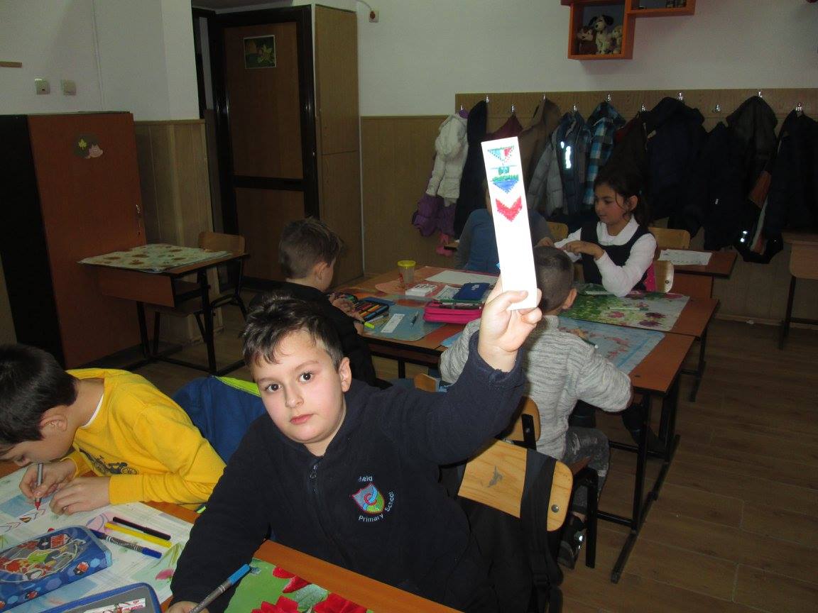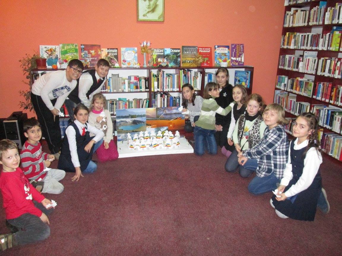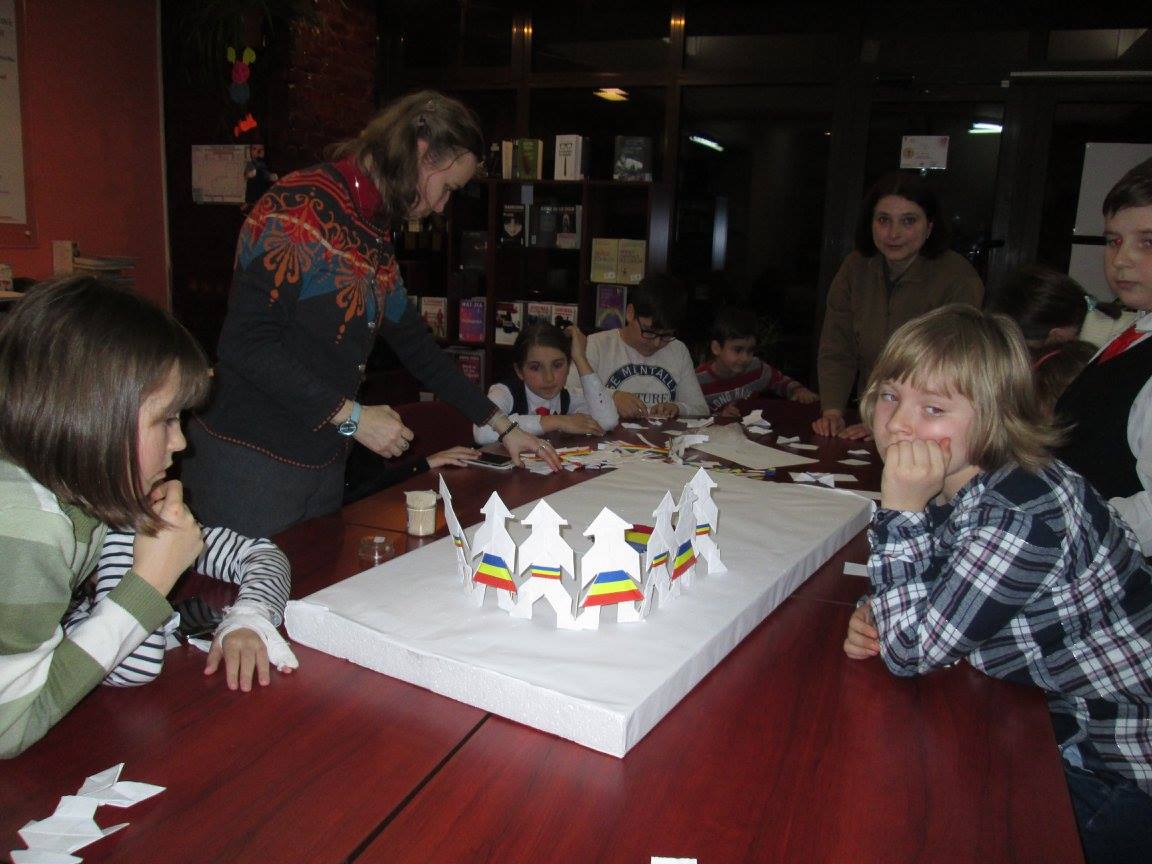 La început elevii au citit povestea „Moș Ion Roată și Unirea” de Ion Creangă iar în urma lucrului din cadrul atelierului de origami a rezultat macheta intitulată „Hai să dăm mână cu mână!”