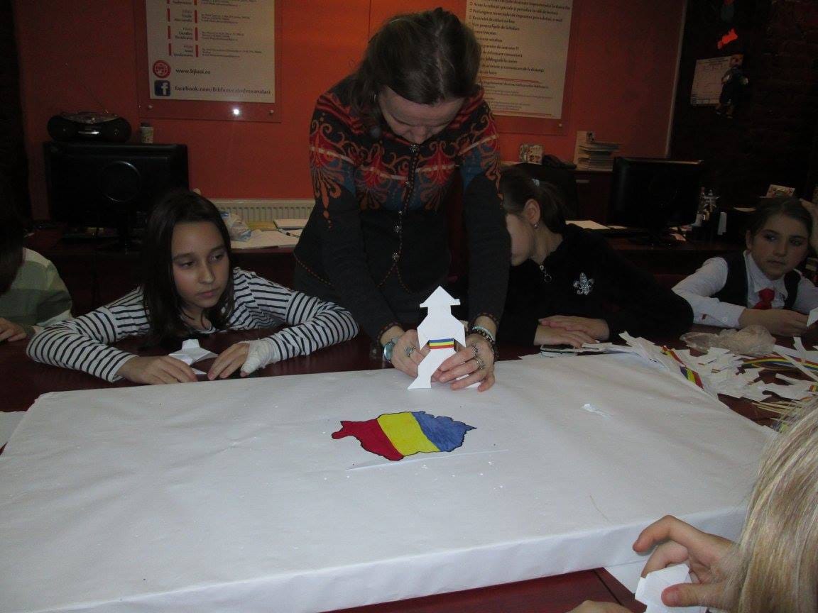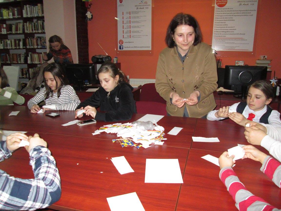 La această primă întâlnire elevii au desenat semne de carte și harta României, materiale necesare pentru a doua parte a activității, care s-a desfășurat în aceeași zi de la orele 17.00 la Filiala „Ionel Teodoreanu” a Bibliotecii Judeţene „Gh. Asachi”.