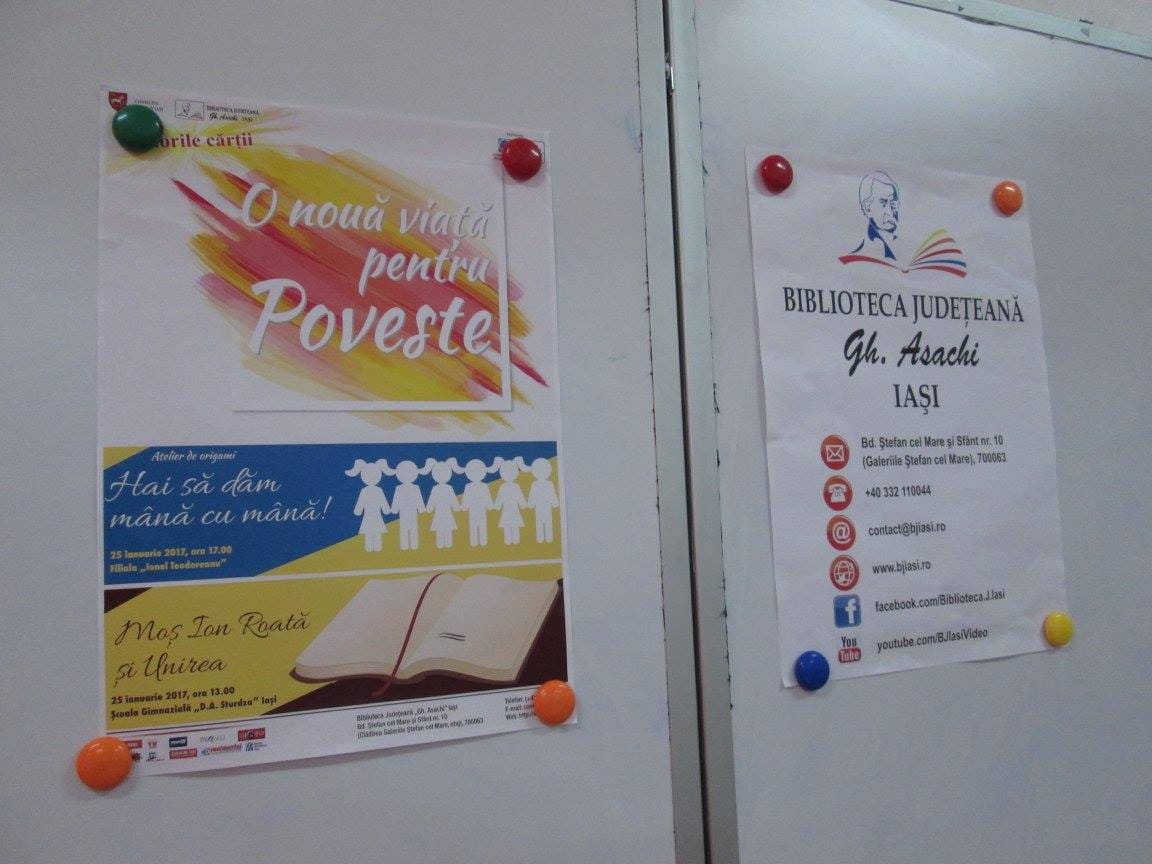 Miercuri, 25 ianuarie 2017, de la ora 13.00, Biblioteca Judeţeană „Gh. Asachi” și Universitatea de Arte „George Enescu” Iași, alături de Școala Gimnazială „D.A. Sturdza” au dat startul unui nou proiect intitulat „O nouă viață pentru Poveste”.