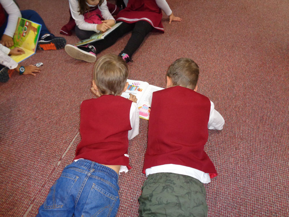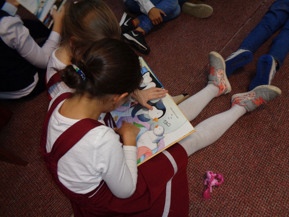 După acest schimb de întrebări și răspunsuri, a sosit momentul lecturii, astfel că fiecare copil și-a ales o carte pe care să o citească alături de unul din colegi. Ilustrațiile deosebite și poveștile amuzante i-au convins că trebuie să revină în bibliotecă alături de părinți, pentru a putea deveni posesorii unui permis de utilizator.
