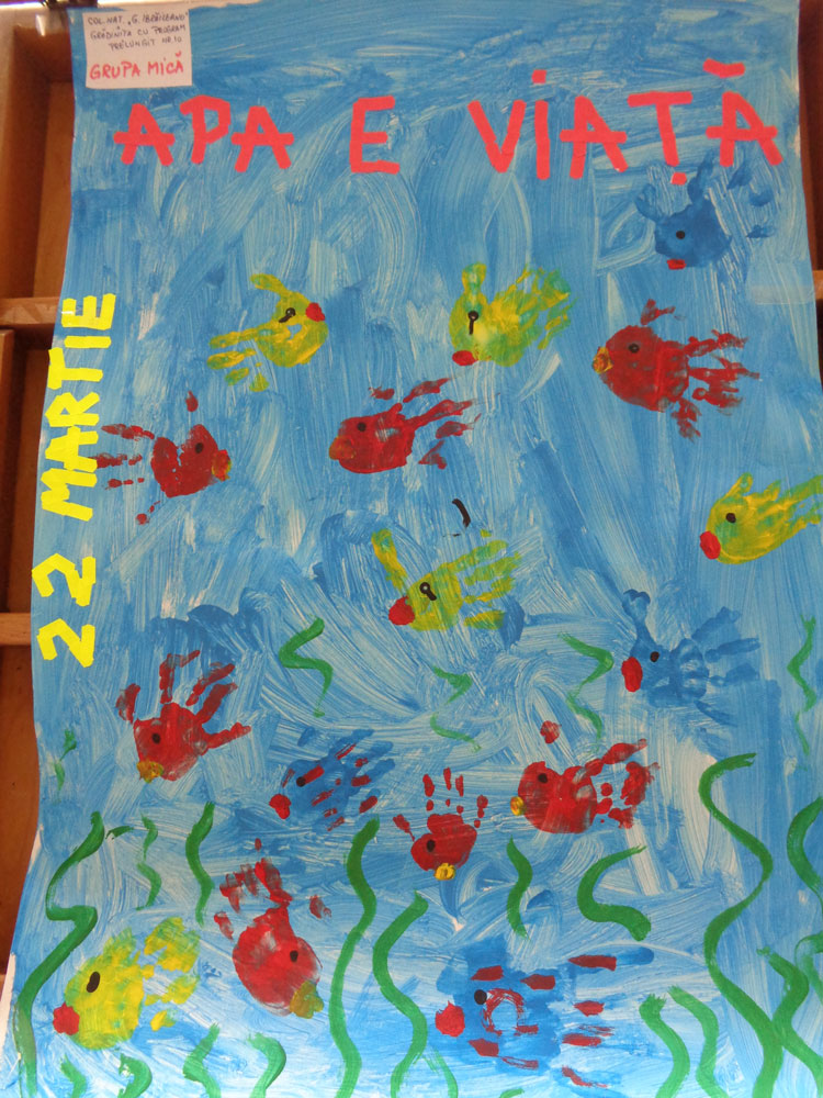 Anul acesta s-au alăturat acestei sărbători și preșcolarii de la Grădinița cu Program Prelungit nr. 10 Iași. De la mic la mare, toți copiii din grădiniță au contribuit și au realizat pentru această zi importantă lucrări plastice cu mesaj, arătând tuturor importanța vitală a apei.
