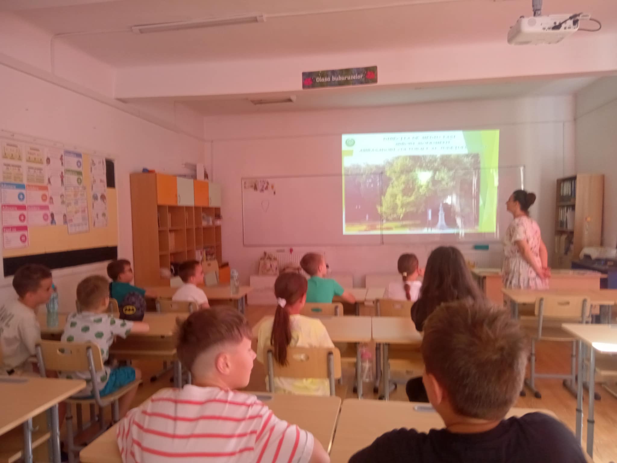 Reprezentanta Direcției Județene de Mediu Iași, a vorbit la școală despre arborii monumentali naționali, despre cei din județul Iași și despre importanța parcurilor dendrologice, a biodiversității de lângă noi, după ce cei mici au beneficiat de o scurtă prezentarea a serviciilor pe care le oferă biblioteca județeană.
