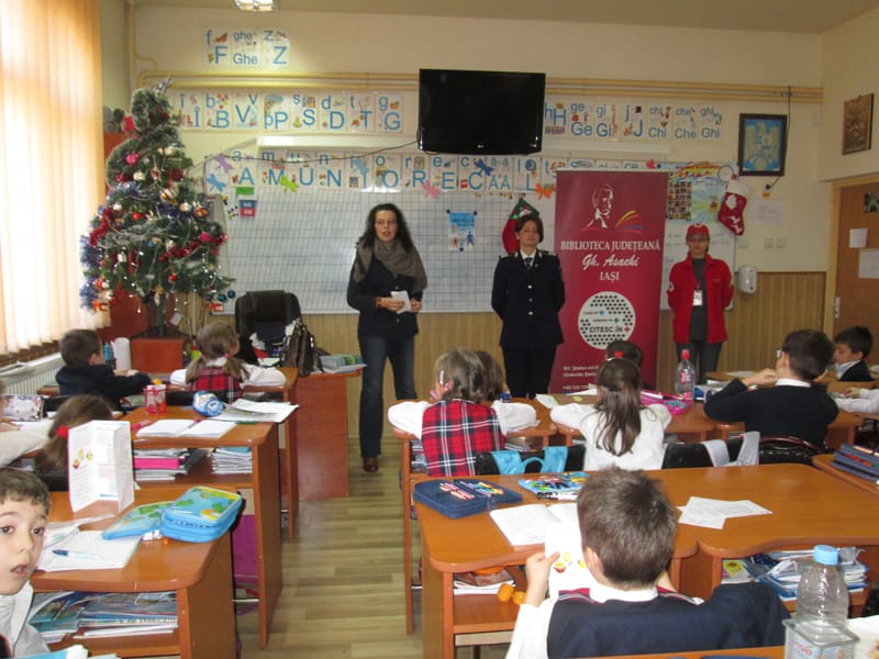 Echipa proiectului Biblio-Școala de Pietoni a fost prezentă azi, 7 decembrie 2015 la elevii clasei a I-a C de la Școala Primară „Carol I” Iași coordonați cu profesionalism de doamna profesor pentru învățământ primar, Raluca Iarovoi.