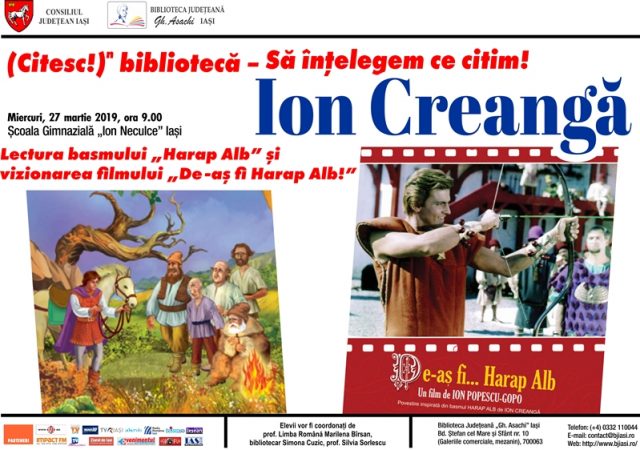 Miercuri, 27 martie 2019, de la ora 09.00, la Școala Gimnazială „Ion Neculce”, Biblioteca Judeţeană „Gh. Asachi” Iași va desfășura o nouă întâlnire din cadrul proiectului Să înțelegem ce citim! – Ion Creangă.