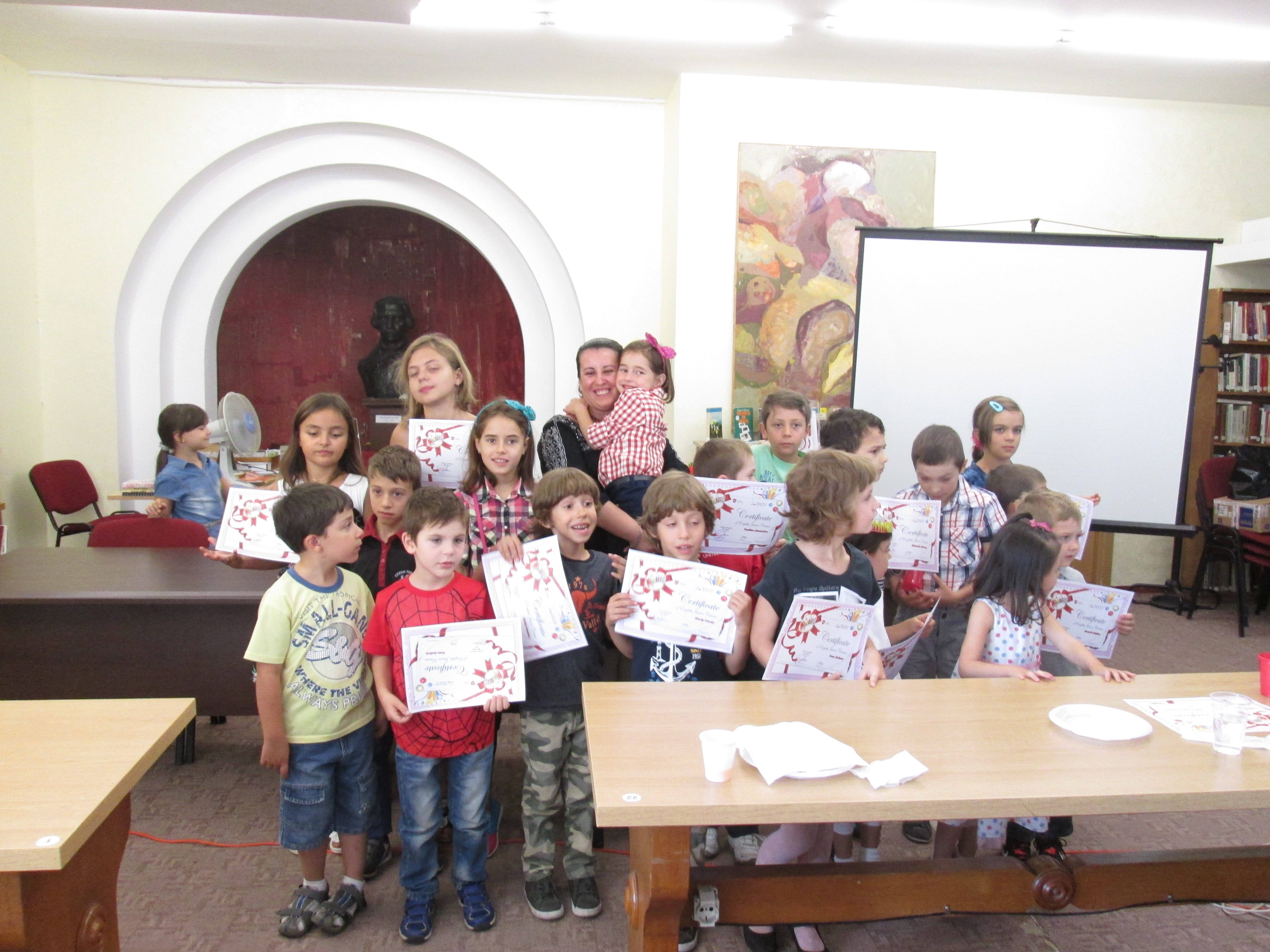 Sâmbătă trecută, 9 august 2014, ne-am întâlnit din nou la Biblioteca Județeană „Gh. Asachi” din Iași la cursurile de limbă engleză pentru juniori. De data aceasta, am avut un curs mai relaxant, pentru că încă avem vacanță. Am învățat engleza cântând, iar copiilor le-au plăcut foarte mult cântecelele alese, unii dintre ei sunt interpreți talentați și foarte buni dansatori. De asemenea, am citit și vizionat poveștile „The Tale of Pinocchio” și „The Story of Goldilocks and The Three Bears”.
