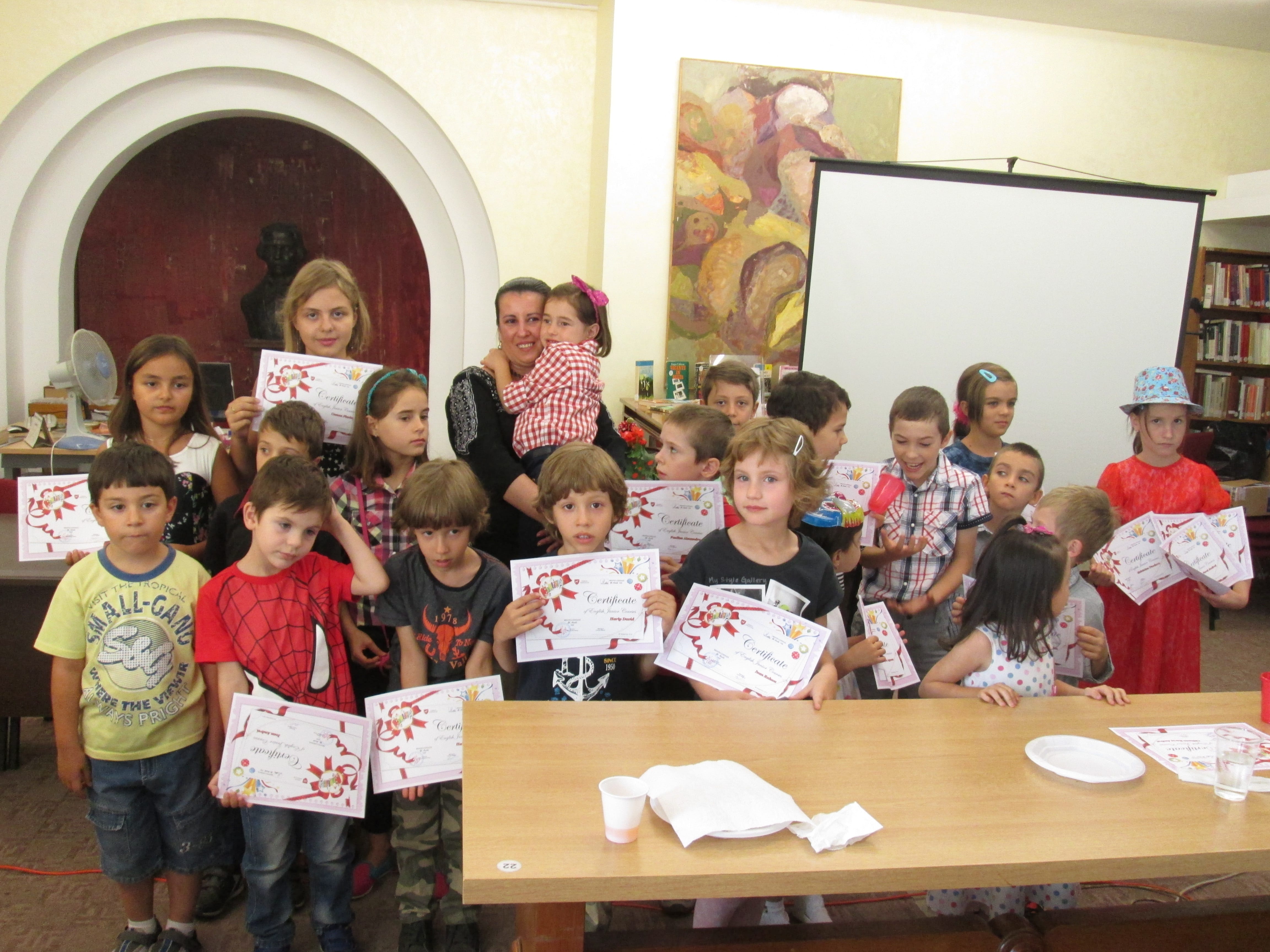 Sâmbătă, 5 iulie, au avut loc primele cursuri de limbă engleză pentru juniori, la biblioteca „Gh. Asachi”. Copiii au primit un scurt test interactiv, au învățat alfabetul în limba engleză, cu ajutorul cântecelor, poezioarelor, unor scurte materiale video, puzzle-urilor și jocurilor. Copiii din grupa mare au văzut și citit povestea „Hansel and Gretel”, au tradus-o și și-au completat cunoștințele lucrând pe o fișă de lucru de consolidare a lecției. Au fost foarte încântați și drept răsplată au vizionat un desen animat după aceeași poveste.