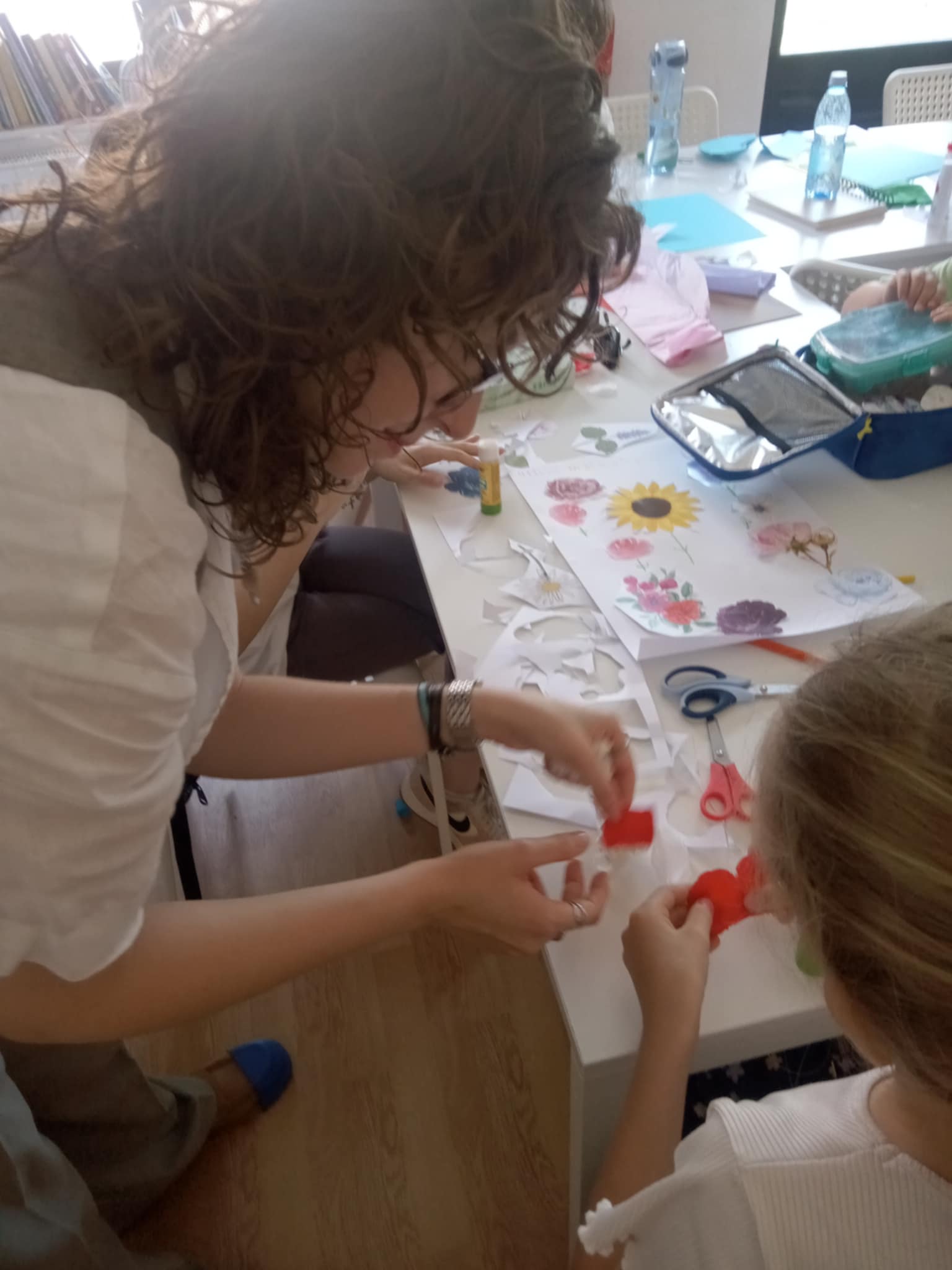 Studenta Claudia Ungureanu, voluntara bibliotecii de la Universitatea de Arte „George Enescu” Iași – Departamentul pentru Pregătirea Personalului Didactic, a propus pentru cei mici o activitate în trei părți, în cadrul căreia aceștia au făcut cunoștință cu semnificația florilor, le-au înbinat într-un colaj pentru mai multă expresivitate, iar activitatea s-a încheiat prin unirea tuturor creațiilor, pentru a obține un covor magic de flori al prieteniei, datorită căruia copiii si-au imaginat câteva povești.