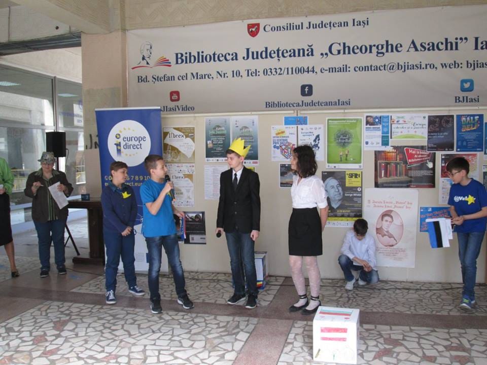 Biblioteca Județeană „Gh. Asachi” Iași, în parteneriat cu Centrul de Informare Europe Direct Iași al Asociației pentru Ecologie și Dezvoltare Durabilă și Școala Gimnazială „Veronica Micle” Iași, a organizat astăzi, 8 mai 2015, concursul LECTURA EUROPEANĂ: LA CONTROL PRIN JOC!