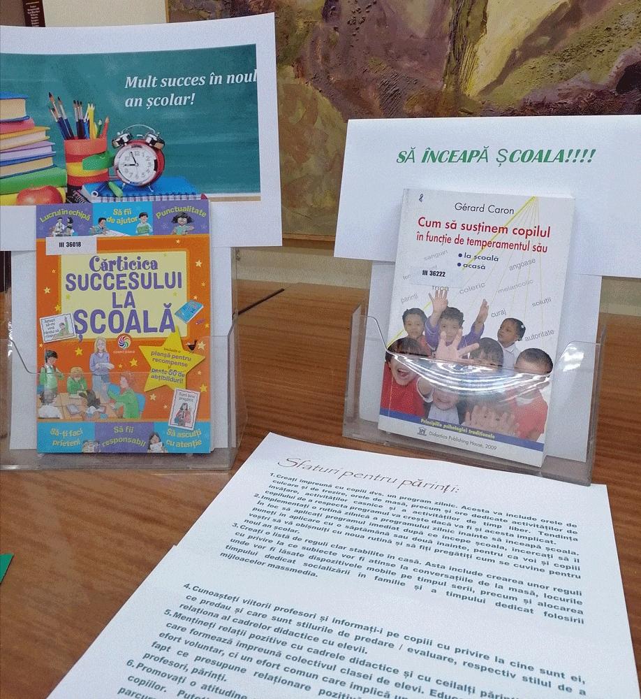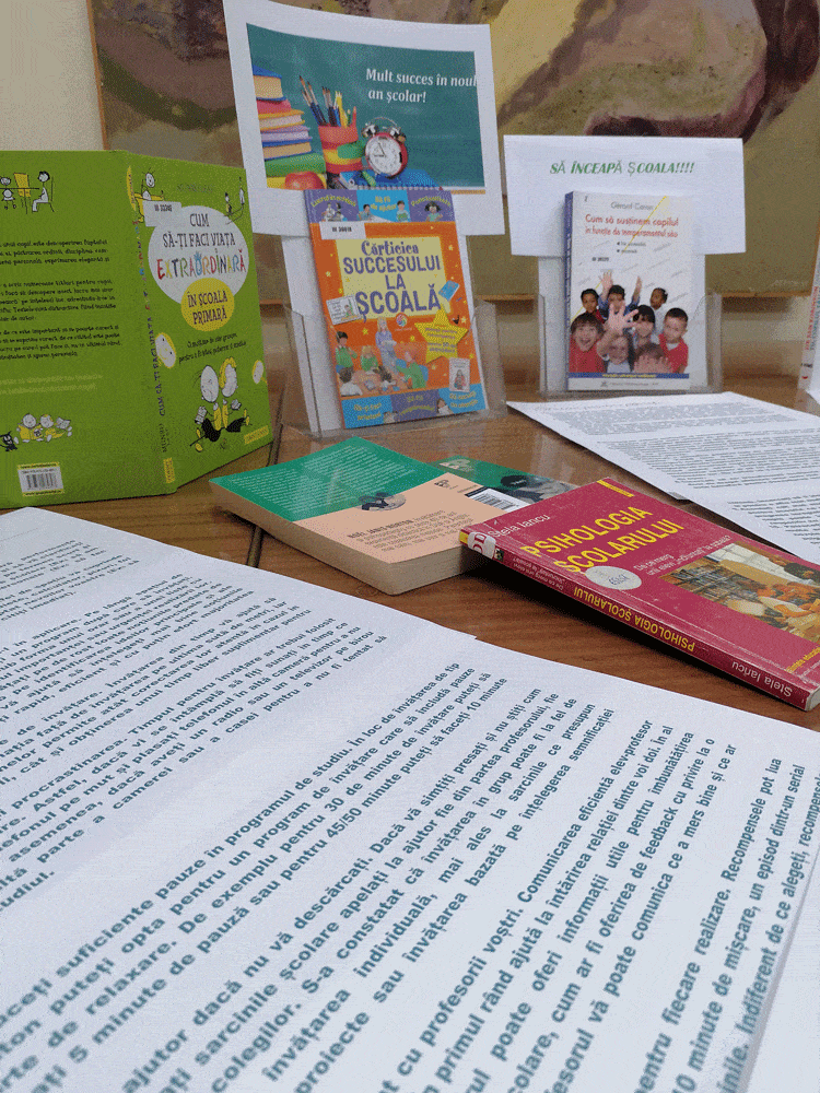 Sala de lectură a Bibliotecii Județene „Gh. Asachi” Iași „vine” în întâmpinarea și ajutorul elevilor și părinților aflați în prag de „gestionare” a unui nou an școlar, cu o expoziție de carte din colecțiile bibliotecii care vizează acest provocator subiect.